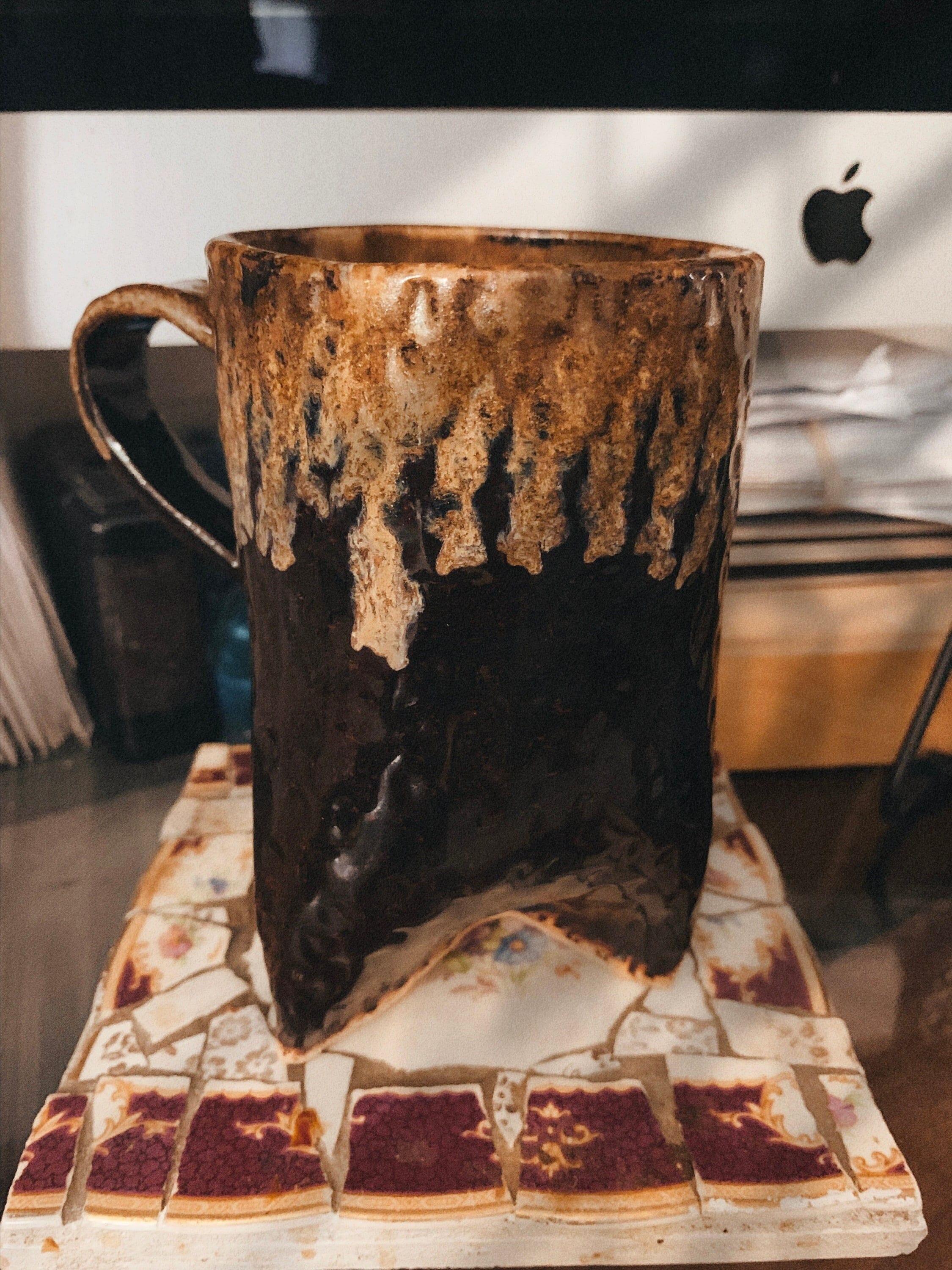 Textured Ceramic Tri-Footed Mug in Rich Plum with Coppery Accents