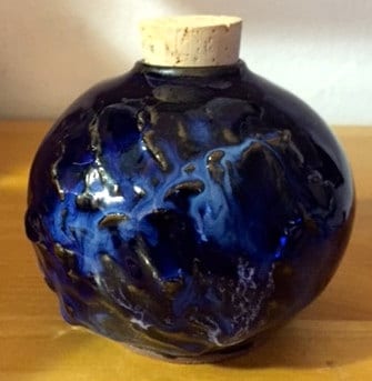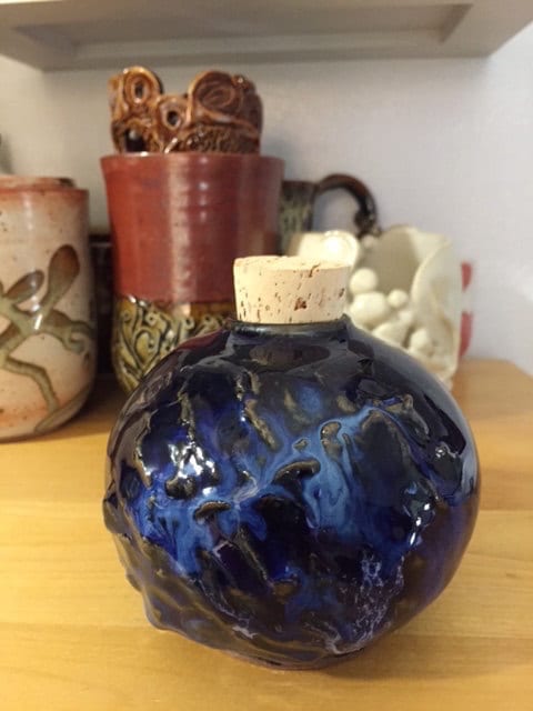 Small Globe Decanter with Cork StopperIn Rich Cobolt Blue with Decorative Texture AccentPerfect for Vinegar and oil or Olive Oil, liquids or GrainsFood Safe, Dish Washer and Microwave SafeH 4"W 4"